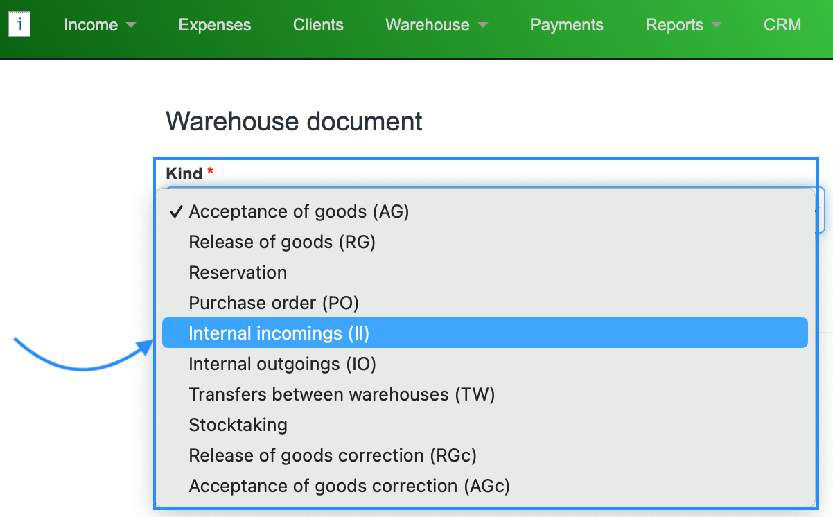 InvoiceOcean allows you the management of the warehouse and product inventory by using warehouse documents. One of the documents you can use for warehouse operations is the Internal incomings (II) document. In this article, we explain when to use this document and how to issue it in InvoiceOcean. In what cases can the II document be used?
