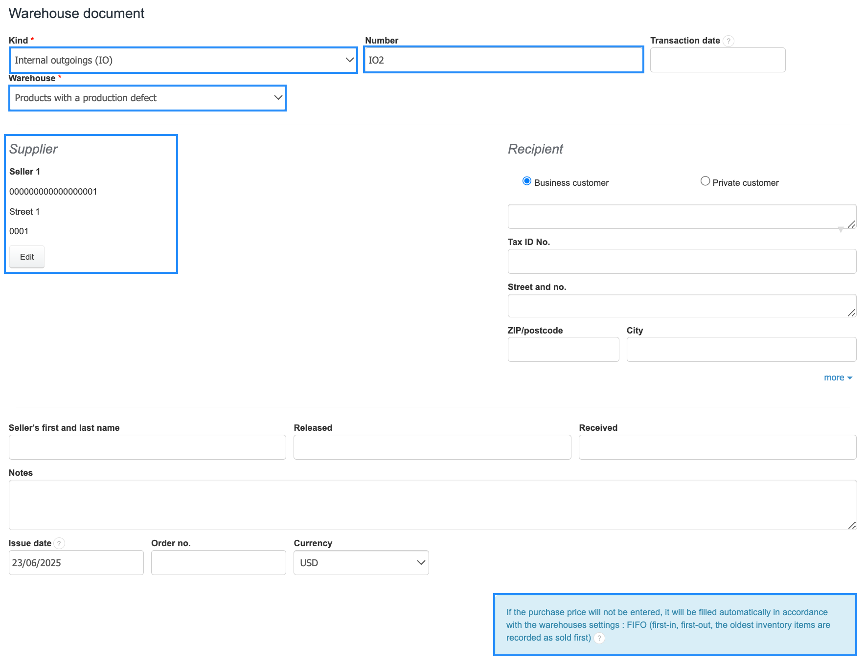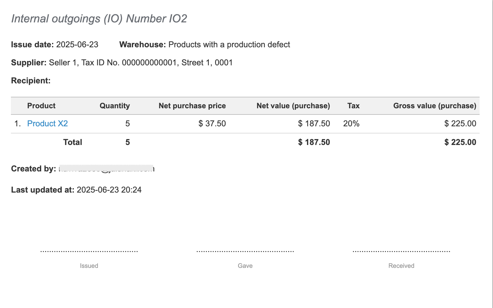 InvoiceOcean allows you the management of the warehouse and product inventory by using warehouse documents. One of the documents you can use for warehouse operations is the Internal outgoings (IO) document. In this article, we explain when to use this document and how to issue it in InvoiceOcean.