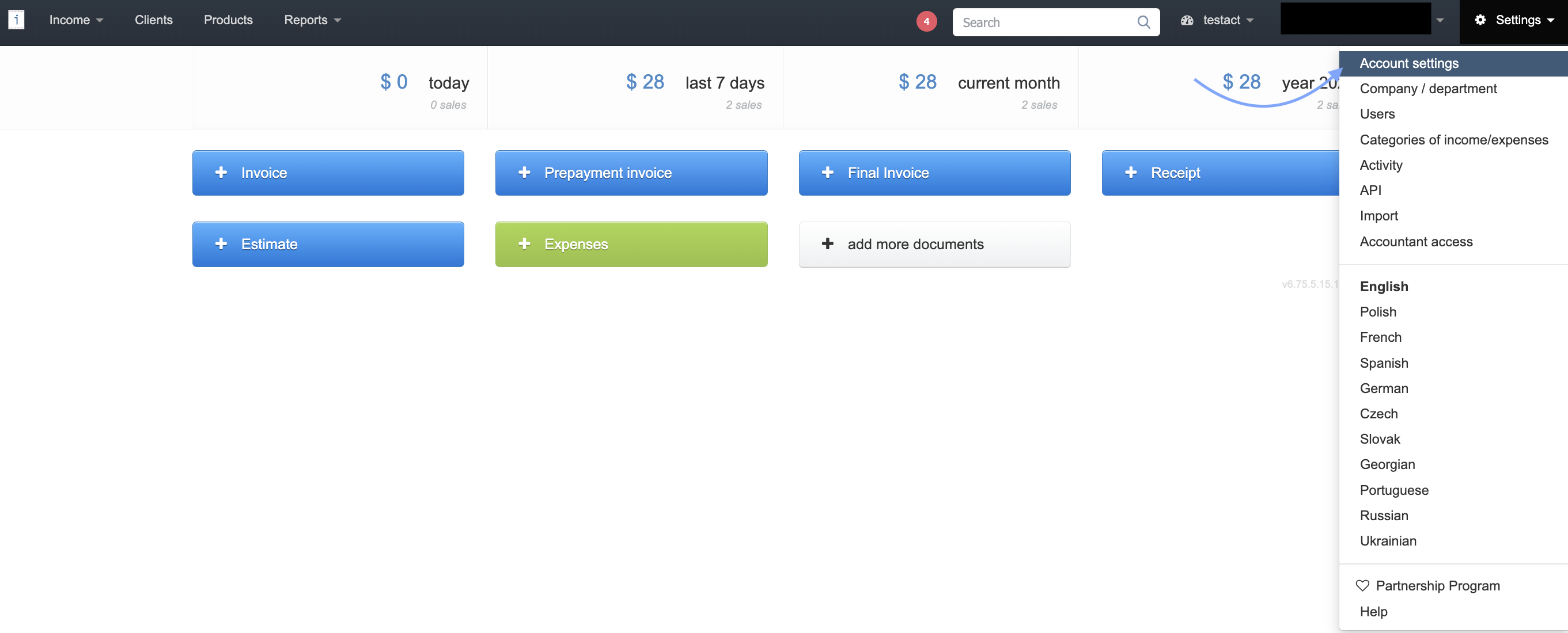 1. Go to the Settings > Account settings tab.