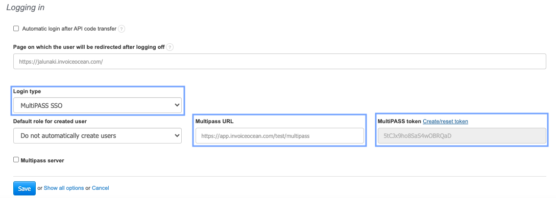 Login type - Multipass SSO: