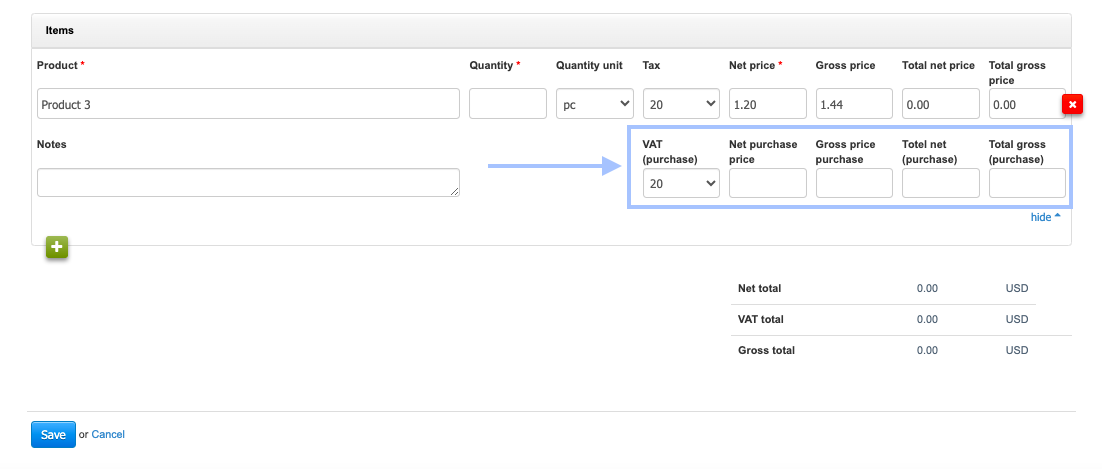 There is also the option to independently provide purchase prices for the product on the RG warehouse document form.