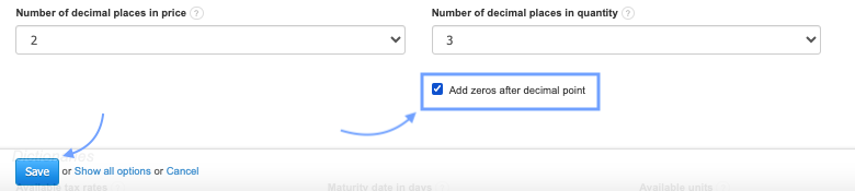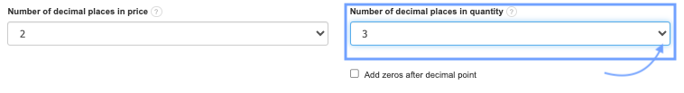 3. If you want the system to fill in with zeros the missing decimal places in quantities, check the box next to the option Add zeros after decimal point.