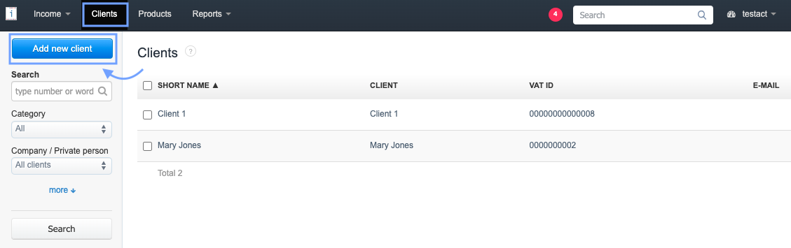 1. Go to the Clients tab and click on the name of the already created client to proceed to editing or create a new one.