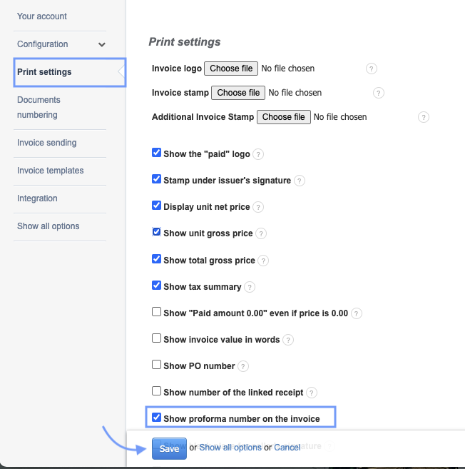 Directly from the level of an issued proforma invoice, you can create a VAT invoice in the system. By default, the proforma number, to which the document is related, is not displayed on the invoice. To show the proforma number on the invoice, you need to activate this option in the account settings. In this article, you will learn how to display the proforma number on the issued document.