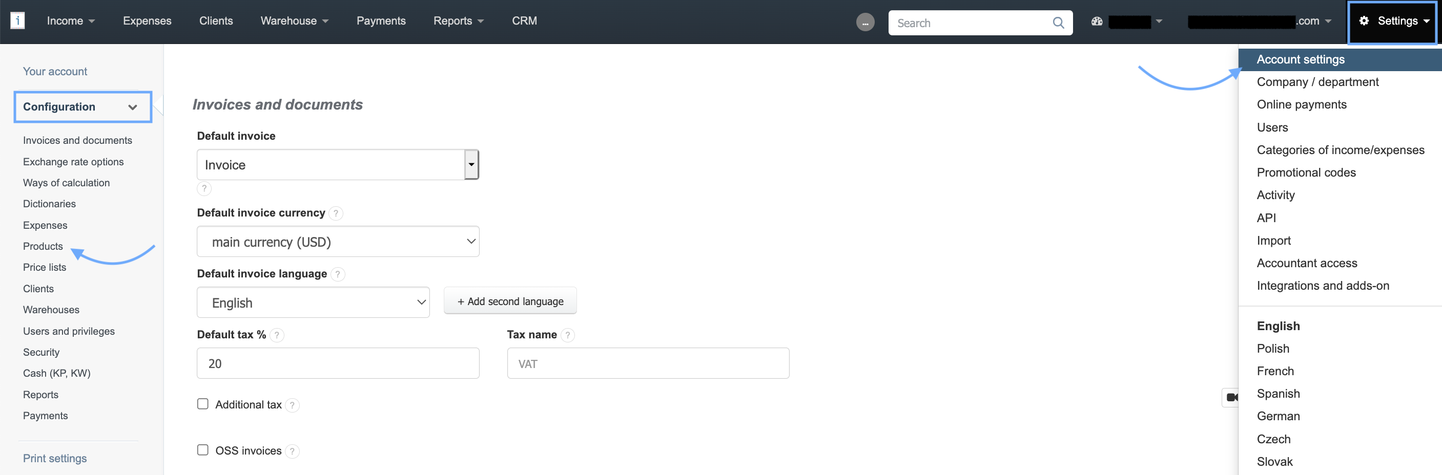 The option to automatically add invoice products to the database is designed to simplify your work and allow quick product entry into your account during the first issuance of an invoice. With this feature, you don't need to create a product in the database before issuing a sales invoice. In this article, you will learn where to check the settings on your account to configure the method for adding products from sales invoices.