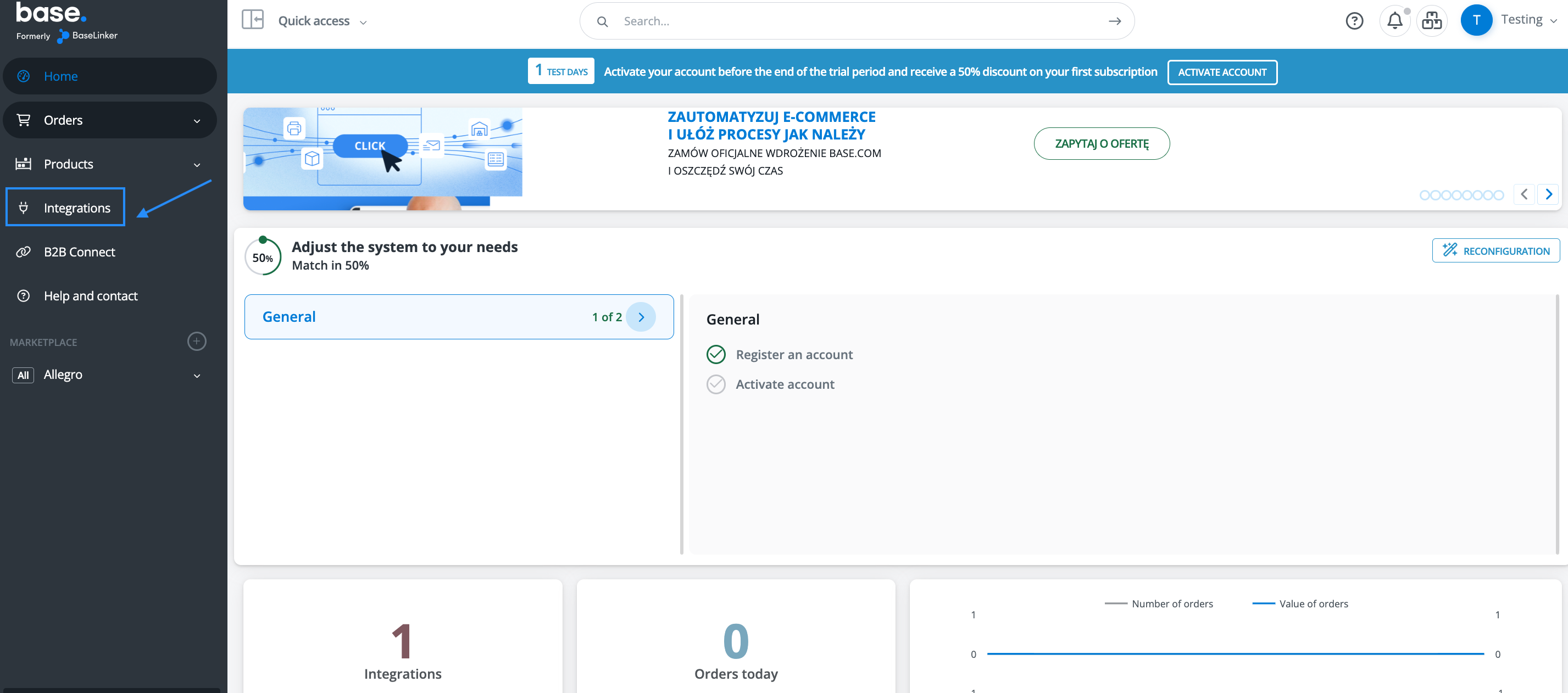 1. In your Base.com main menu, find the Integrations tab > Add Integration