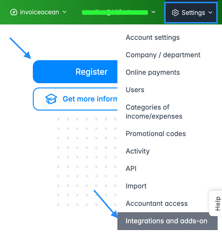 Once you login into your Base account, you must integrate your InvoiceOcean account.