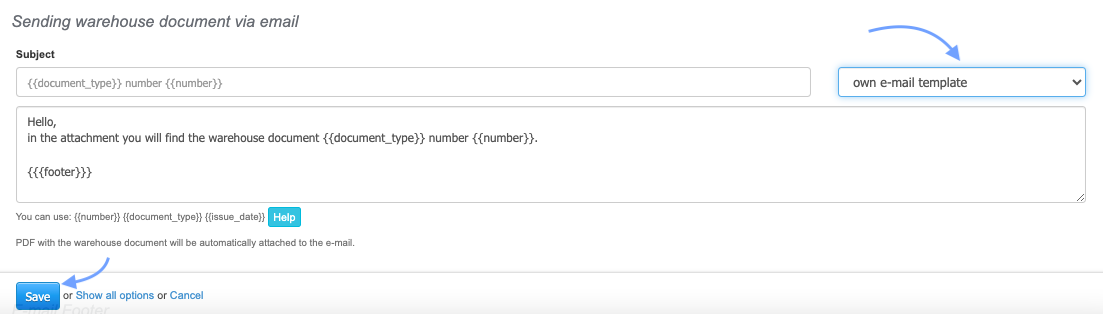 *NOTE! A warehouse document can be sent to a maximum of 5 different recipients at once, and their emails should be separated by commas.