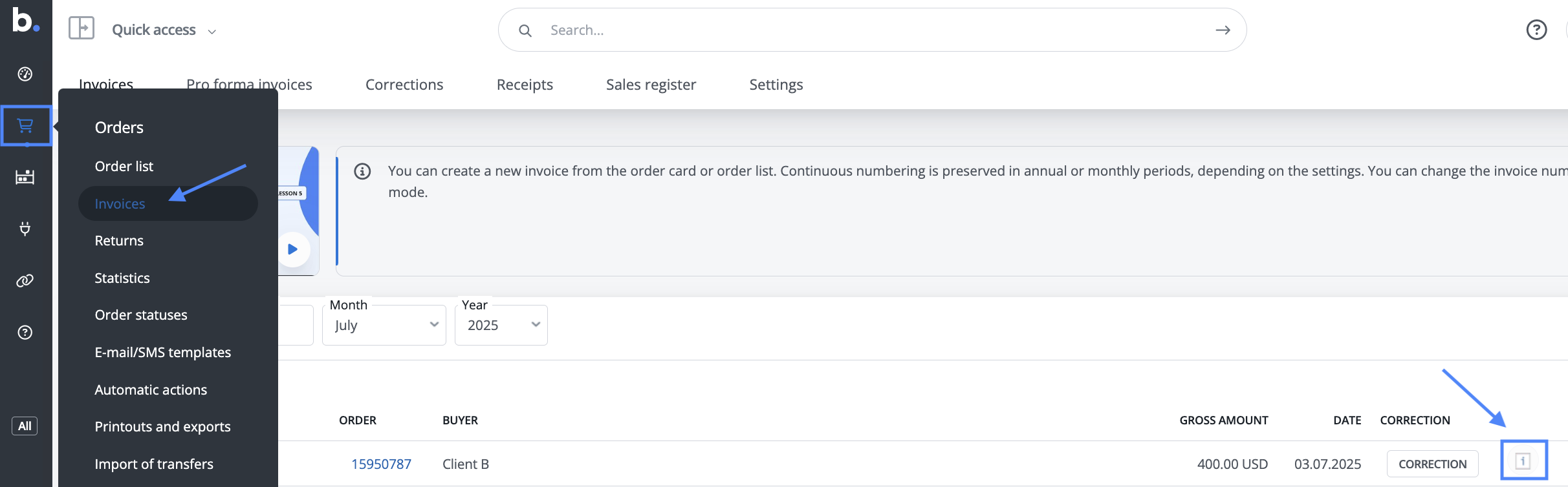 How to create an invoice from an order placed in Base.com and send it to InvoiceOcean?
