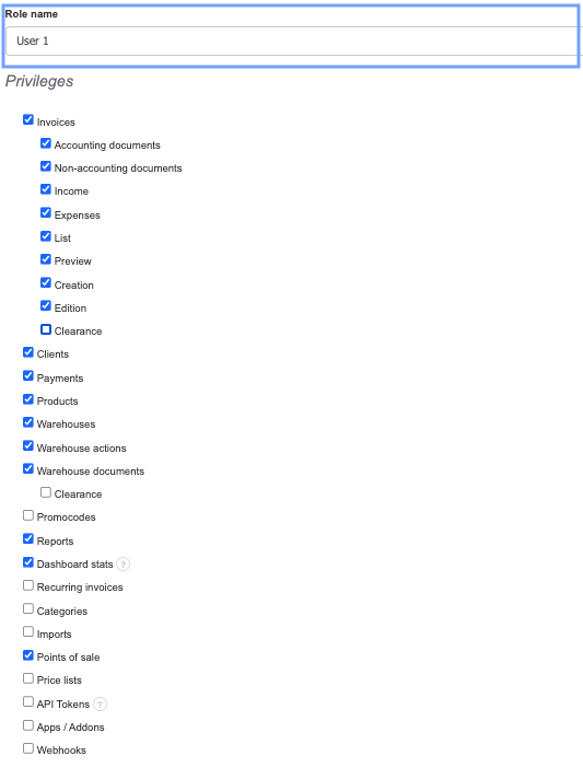 - Custom roles (user privileges) in InvoiceOcean