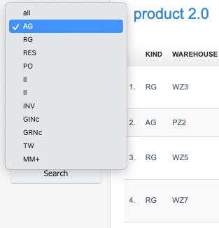 To track the warehouse actions of a specific product, we need to locate it on the list of products and display its product card.