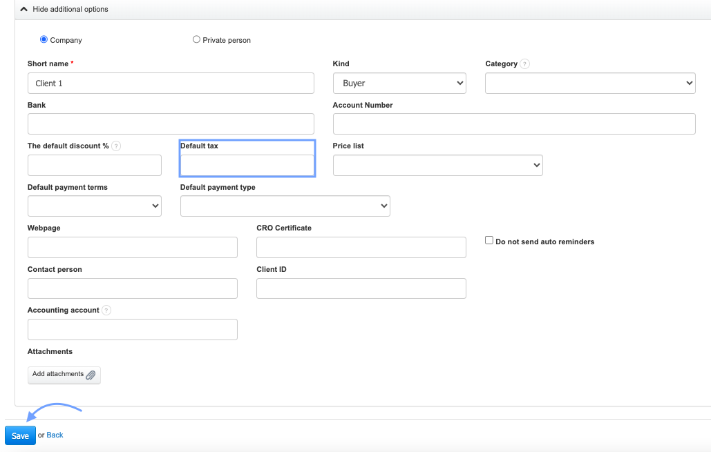 In InvoiceOcean, there is an option to assign a tax to a specific client. Thanks to this feature, we can easily assign the appropriate VAT rates to contractors. This allows the system to remember the default tax that will apply only to a specific client, regardless of the tax assigned on the product card.