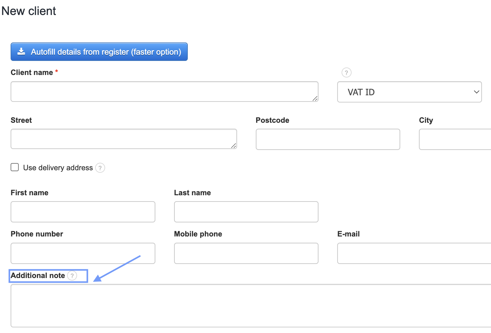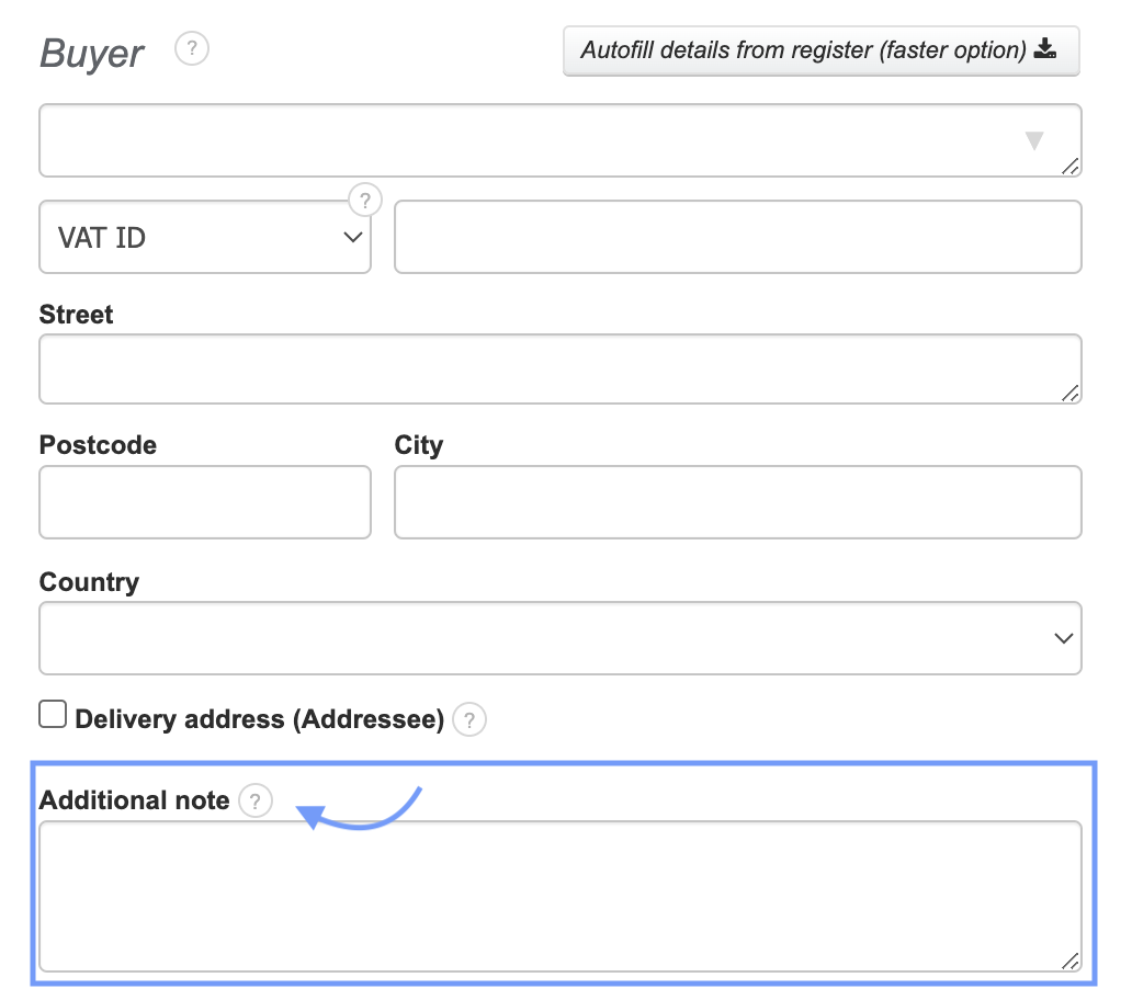 In this field, you can add any information you need: any comments, information about the delivery method, or any other necessary information.