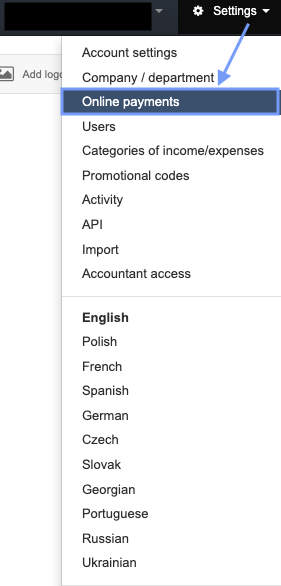 - Settings > Online Payments;
