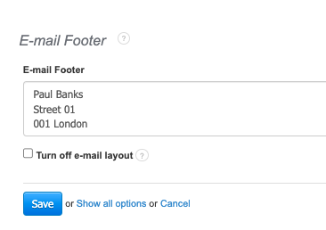 - In the E-mail footer column, enter the text you want others to see in the emails you send;