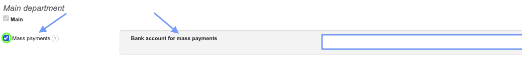 - Enter the constant part of the account number in the Bank account for mass payments field.