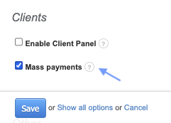 If you have a great number of clients and offer mass products/services (Internet, TV), the mass payment feature (offered by banks) may come in handy. To enable to mass payment feature: