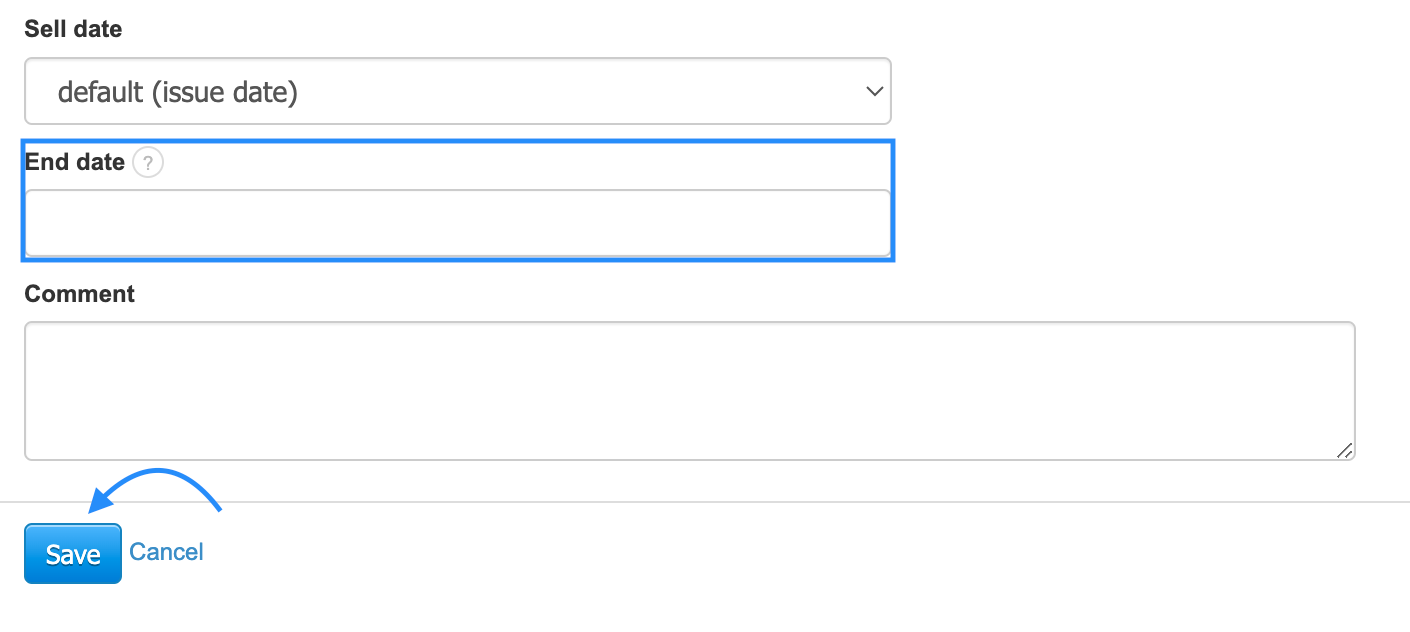 To deactivate the cycle, select the previously created cycle from the list and enter its summary by clicking on its Name. Then use the Edit button to make changes to the cycle. At the bottom, you will find the End Date field. From the calendar, which is visible after clicking on the field, select the date and confirm the changes by clicking the Save button. Using this option will stop the uncertainty of subsequent documents. You can leave such a cycle on the list of recurring invoices as inactive or delete it using the gear icon on the right side.