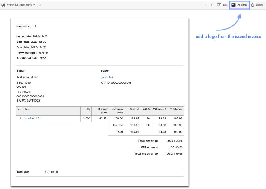 It may happen that despite uploading a new logo, the old one is still visible on the invoice.