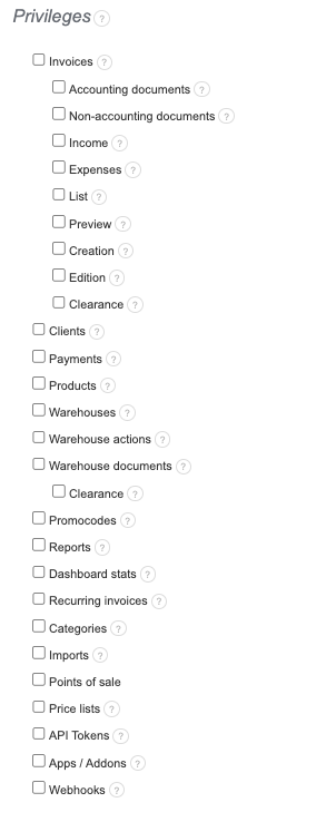 Edition - a person with access to edit documents will be able to make changes to the content of income documents. Note: this privilege can be assigned without granting access to the list and preview of documents! This privilege can be used when editing documents through the API; however, we recommend