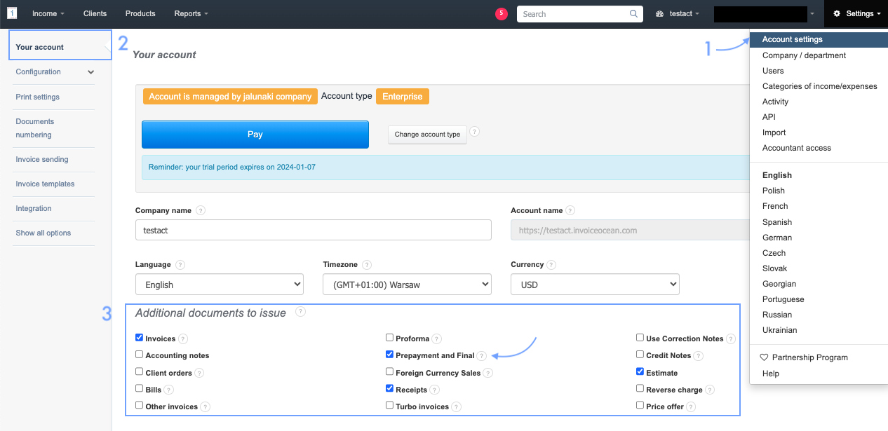 InvoiceOcean allows you to issue prepayment and final invoices, which are useful, for example, for settling transactions for which you receive payments in installments or if you need to request a prepayment from the client for a service to be provided. In this post, you will learn how to activate and create this type of document within your account.