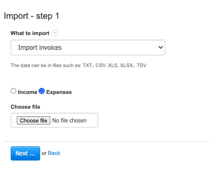 To import invoices on the expenditure side: