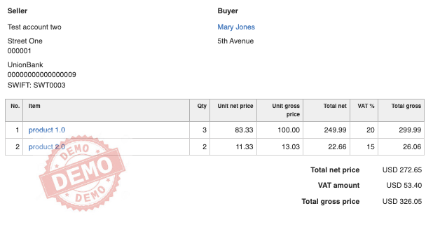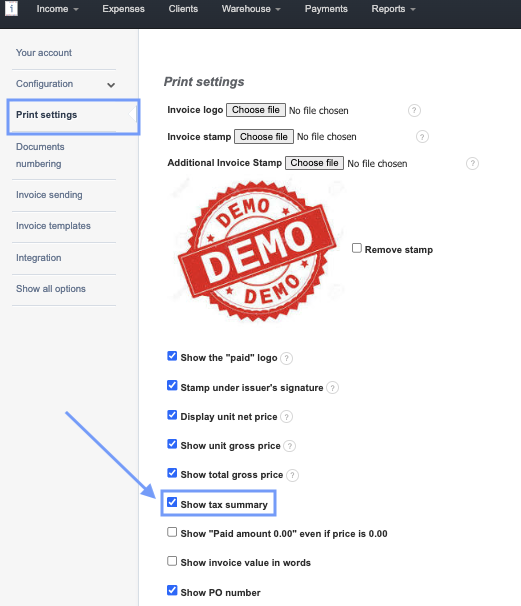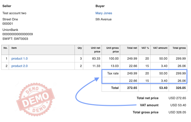 When issuing an invoice with items that include several different VAT rates, it is easy to permanently add the display of a VAT value summary with a breakdown for each individual rate.