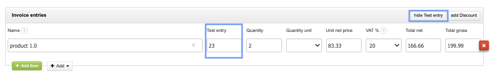 Editing the content of an additional entry on the invoice items: