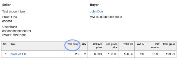 - In the Additional entry on the invoice section, create a formula that will be displayed in this place during the creation or editing of the invoice.