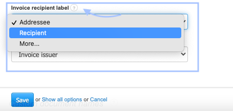 - Click on the field Invoice recipient label